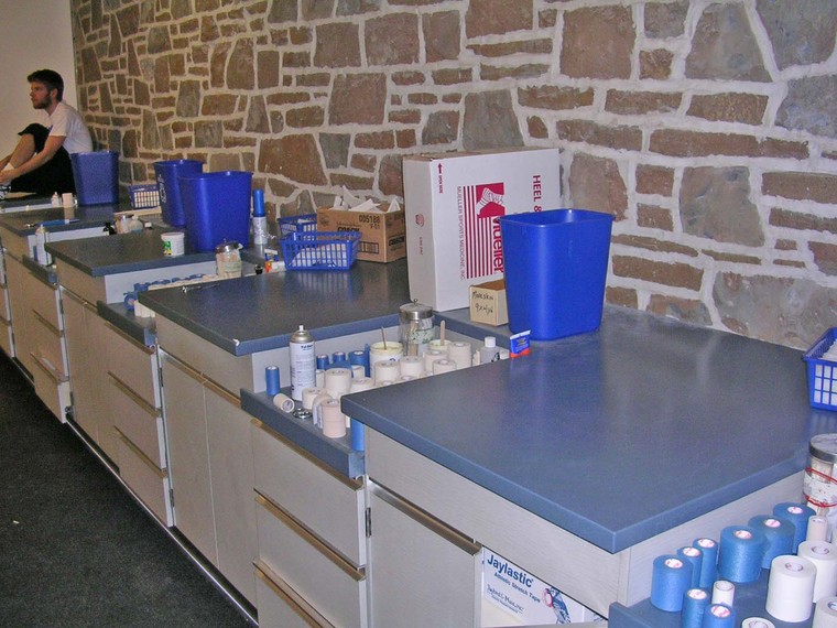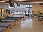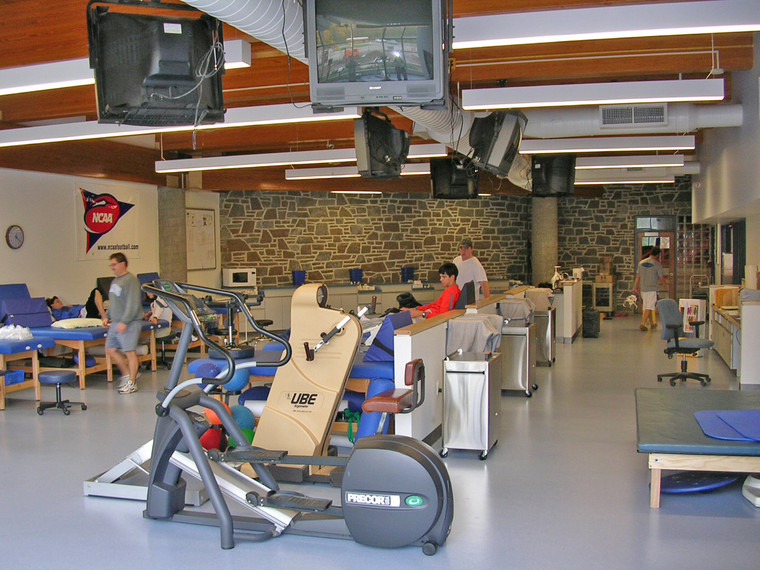The facility features ample treatment areas for student-athletes, taping stations and a large area for functional rehabilitation, which includes foam rollers, propreoceptive devices, medicine balls, a rebounder and cardiovascular machines. |